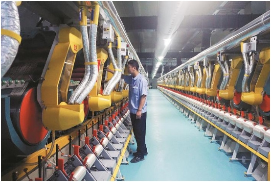 12月23日,在新疆天鷺新材料科技有限公司紡絲生產(chǎn)車間,工人察看生產(chǎn)線運(yùn)行情況。該公司投資25億元,打造年產(chǎn)5萬噸再生纖維素長絲項(xiàng)目,今年1-11月已實(shí)現(xiàn)產(chǎn)值3.7億元。