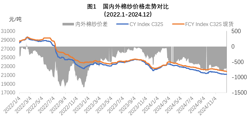 二、內(nèi)外棉紗月度均價(jià)下跌