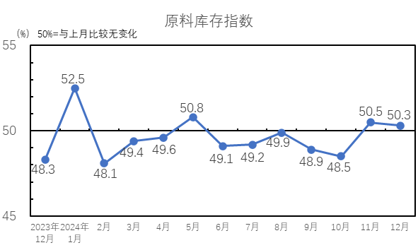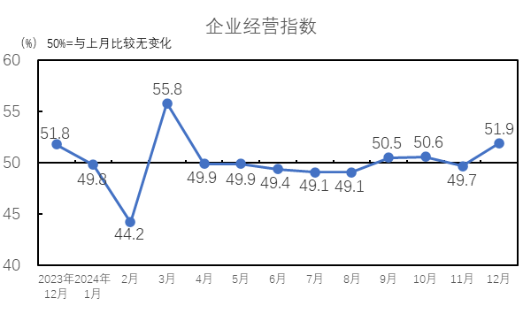 中國經(jīng)濟(jì)景氣水平延續(xù)回升向好態(tài)勢。國家統(tǒng)計(jì)局服務(wù)業(yè)調(diào)查中心和中國物流與采購聯(lián)合會發(fā)布的2024年12月中國制造業(yè)采購經(jīng)理指數(shù)為50.1%,較上月下降0.2個(gè)百分點(diǎn),保持?jǐn)U張區(qū)間。12月,宏觀政策組合效應(yīng)繼續(xù)顯現(xiàn),制造業(yè)PMI連續(xù)3個(gè)月保持在臨界點(diǎn)以上,企業(yè)生產(chǎn)經(jīng)營活動(dòng)加快,我國經(jīng)濟(jì)景氣水平延續(xù)回升向好態(tài)勢。