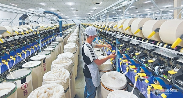 1月30日,在位于鐵門關(guān)經(jīng)濟(jì)技術(shù)開發(fā)區(qū)的鐵門關(guān)市星宇信達(dá)紡織有限公司生產(chǎn)車間里,工人在生產(chǎn)線上作業(yè)。春節(jié)期間,該公司開足馬力趕訂單,奮戰(zhàn)新春“開門紅”。