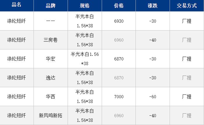 江蘇滌綸短纖現(xiàn)貨價格下跌30元到6930元/噸。假期原油下跌,疊加季節(jié)性累庫壓力壓制,節(jié)后開盤首日短纖價格窄幅下跌。