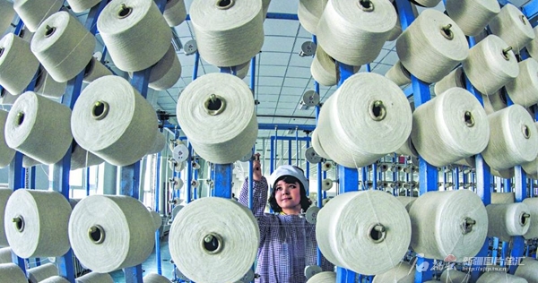 3月23日,工人在鐵門關(guān)市星宇信達紡織有限公司生產(chǎn)線上作業(yè)。該公司是鐵門關(guān)市招商引資、年產(chǎn)值超4億元的重點企業(yè)。今年以來,該公司開足馬力生產(chǎn)訂單,呈現(xiàn)產(chǎn)銷兩旺態(tài)勢。