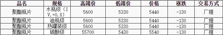 華東聚酯瓶片價格下跌130元至5440元/噸,關(guān)稅消息發(fā)酵,原料一度觸及跌停,聚酯瓶片市場重心繼續(xù)大幅下滑,4月貨源報盤5330-5600元/噸,局部略高5750元/噸或期貨合約2506平水至升水70元/噸,零星低價遞盤5280元/噸,場內(nèi)觀望氛圍濃厚。