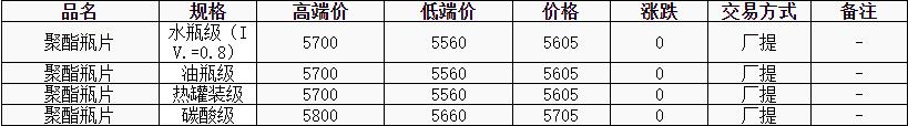 華東聚酯瓶片價格穩(wěn)至5605元/噸,原油大幅上漲,然而聚酯工廠減產(chǎn)消息影響,原料震蕩偏弱。聚酯瓶片工廠報穩(wěn),市場重心僵持整理。4-5月貨源報盤5560-5700元/噸,局部略高5800元/噸或期貨合約2056升水10-130元/噸;遞盤5560-5570元/噸,買氣零星。