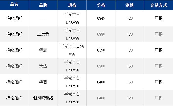 1.4D半光直紡滌綸短纖江浙商談重心6250-6450元/噸出廠或短送。