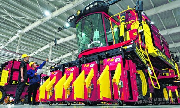 7月29日,新疆缽施然智能農(nóng)機股份有限公司工人在有序作業(yè)。該公司是新疆棉花產(chǎn)業(yè)鏈最大的裝備制造企業(yè),目前已實現(xiàn)自制件供應達90%以上,自動化生產(chǎn)程度達75%以上。