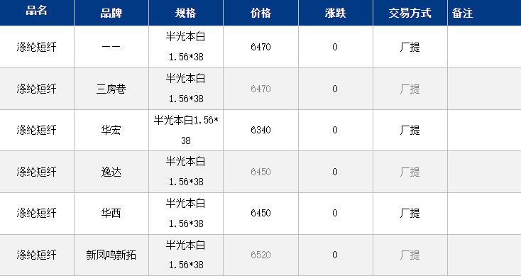 1.4D半光滌綸短纖主流商談6400-6700元/噸。