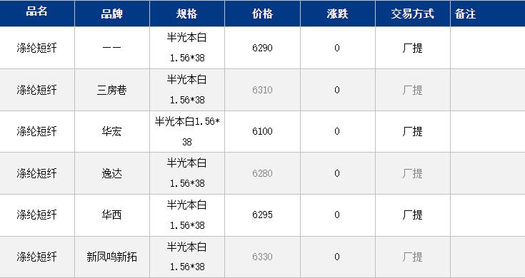 1.4D半光直紡滌綸短纖江浙商談重心6150-6450元/噸出廠或短送,福建主流商談6150-6350元/噸現(xiàn)款短送,山東、河北主流6250-6550元/噸送到。