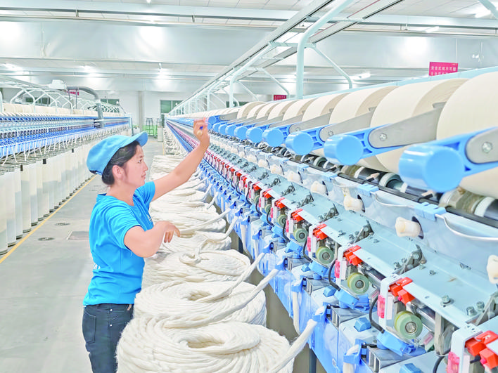 10月17日,工人在位于阿瓦提縣阿瓦提鎮(zhèn)庫木巴格社區(qū)的某紡織廠車間作業(yè)。近期以來,阿瓦提縣紡織廠開足馬力趕訂單,及時(shí)供應(yīng)市場需求。