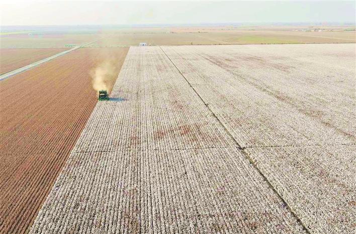 “今年我種的棉花平均畝產約500公斤,再過幾天就能收完?!逼邘熞欢藞F十一連種棉“老把式”劉冰站在地頭,望著來回穿梭的采棉機說,“都說科學種田、豐收不愁,這話一點兒都不假。我也要緊跟時代,努力做個‘新農人’?!?/p>
