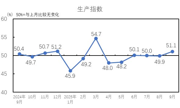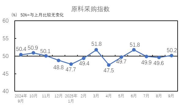中國制造業(yè)采購經(jīng)理指數(shù)繼續(xù)回升。國家統(tǒng)計局服務業(yè)調(diào)查中心和中國物流與采購聯(lián)合會發(fā)布的2025年9月中國制造業(yè)采購經(jīng)理指數(shù)為49.8%,較上月上升0.4個百分點,景氣水平繼續(xù)改善,我國經(jīng)濟總體產(chǎn)出擴張略有加快。