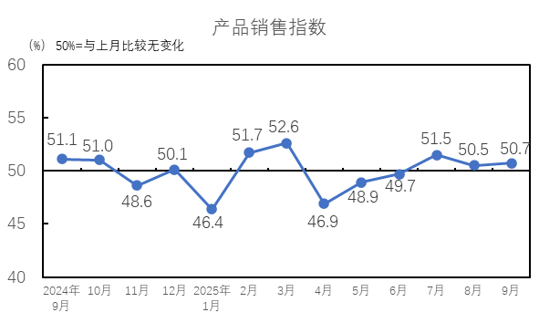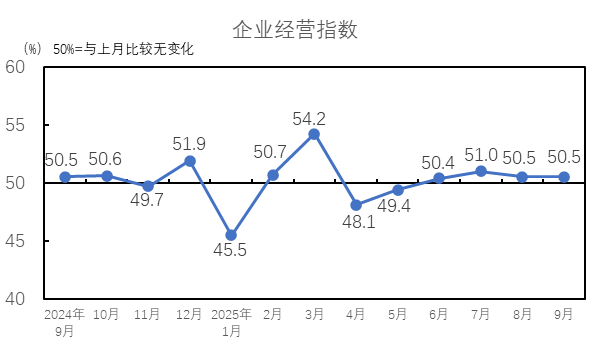 2025年9月,企業(yè)經(jīng)營指數(shù)為50.5%,高于臨界點,與8月持平。9月,市場情緒轉暖,訂單好轉,紡織廠銷售得到改善,企業(yè)經(jīng)營指數(shù)好轉,但利潤表現(xiàn)稍弱。從構成企業(yè)經(jīng)營指數(shù)的分項指標看,營業(yè)收入指數(shù)為51.3%,較8月上升1.3個百分點;利潤總額指數(shù)為49.7%,較8月下降1.2個百分點,營業(yè)收入指數(shù)高于臨界點,利潤總額指數(shù)低于臨界點。