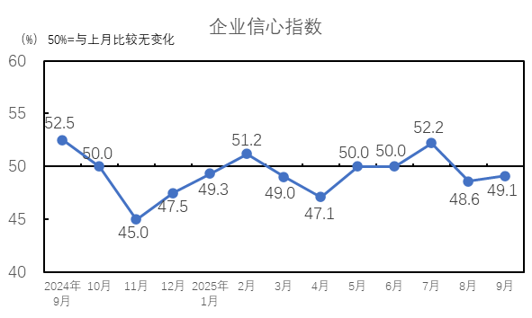 2025年9月,企業(yè)信心指數(shù)為49.1%,較8月上升0.5個百分點,企業(yè)信心指數(shù)低于臨界點,對未來市場信心不足。9月,市場氛圍較上月好轉,企業(yè)訂單好轉,但利潤不及預期,9月整體市場行情不及往年同期,企業(yè)對后續(xù)市場預期偏謹慎,對未來市場信心降低。