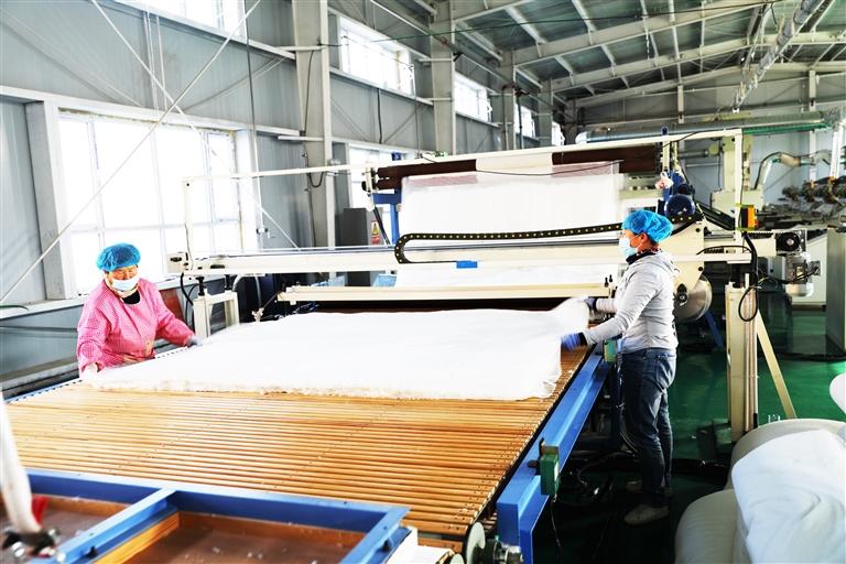 近日,走進(jìn)烏蘇市興棉實(shí)業(yè)有限公司棉制品生產(chǎn)車間,工人在機(jī)器前忙碌著加工棉制品。該公司成立于2023年,今年在生產(chǎn)優(yōu)質(zhì)提凈棉的同時(shí),新增生產(chǎn)設(shè)備,以新疆長絨棉生產(chǎn)優(yōu)質(zhì)棉制品,自8月以來,已生產(chǎn)棉被1.5萬床,到年底可達(dá)4萬床,今年預(yù)計(jì)能實(shí)現(xiàn)生產(chǎn)總值3500余萬元。