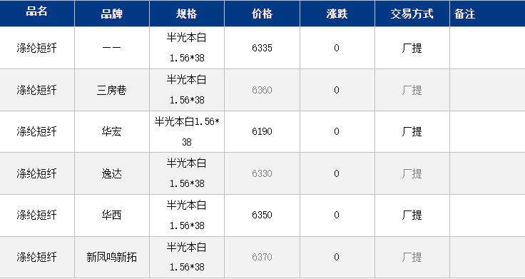 1.4D半光直紡滌綸短纖江浙商談重心6200-6450元/噸出廠或短送,福建主流商談6300-6450元/噸現(xiàn)款短送,山東、河北主流6350-6550元/噸送到。