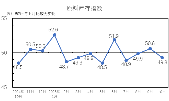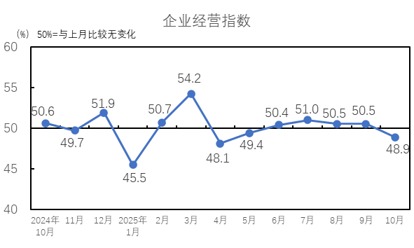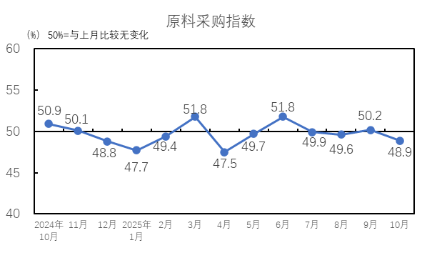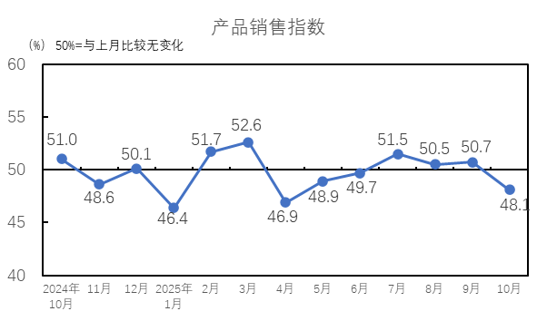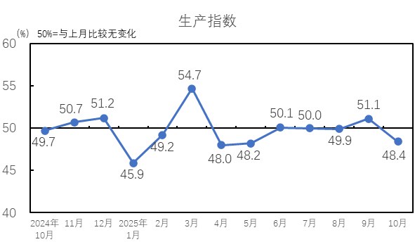 中國制造業(yè)采購經理指數有所回落。國家統(tǒng)計局服務業(yè)調查中心和中國物流與采購聯合會發(fā)布的2025年10月中國制造業(yè)采購經理指數為49.0%,較上月下降0.8個百分點。10月,受“十一”假期前部分需求提前釋放及國際環(huán)境更趨復雜等因素影響,制造業(yè)生產活動較上月放緩。