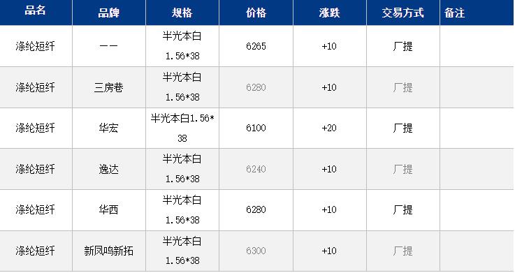江蘇滌綸短纖現(xiàn)貨價(jià)格上漲10元到6265元/噸;MEG反彈帶動(dòng)從成本上升,短纖價(jià)格窄幅跟進(jìn);目前江蘇主流6250-6310元/噸自提,偏低6100元/噸附近自提。