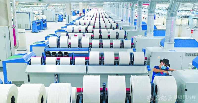 1月18日,工人在位于呼圖壁縣工業(yè)園區(qū)的新疆宇華紡織科技有限公司生產(chǎn)車間作業(yè)。作為自治區(qū)級農(nóng)業(yè)產(chǎn)業(yè)化龍頭企業(yè)及北疆地區(qū)規(guī)模最大的氣流紡純棉紗生產(chǎn)基地,該公司通過生產(chǎn)線智能化改造后,其產(chǎn)品附加值提高5%,預(yù)計今年可實現(xiàn)產(chǎn)值6億元。