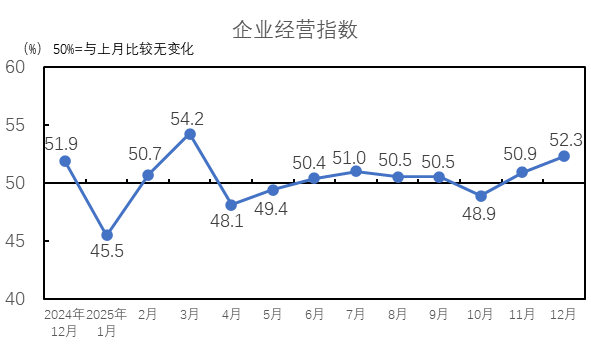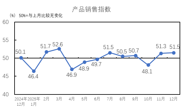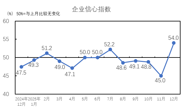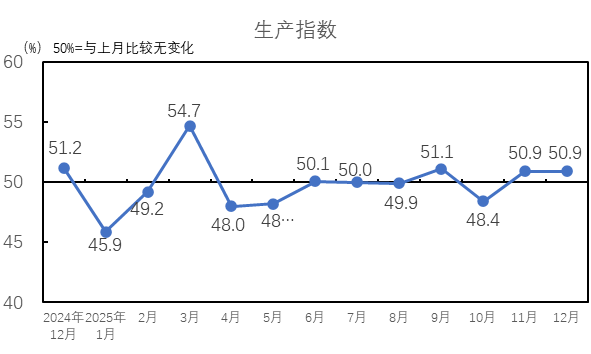 中國制造業(yè)采購經(jīng)理指數(shù)升至臨界點(diǎn)以上。國家統(tǒng)計(jì)局服務(wù)業(yè)調(diào)查中心和中國物流與采購聯(lián)合會發(fā)布的2025年12月份中國制造業(yè)采購經(jīng)理指數(shù)為50.1%,比上月上升0.9個百分點(diǎn),4月份以來首次升至擴(kuò)張區(qū)間。我國經(jīng)濟(jì)景氣水平總體回升。