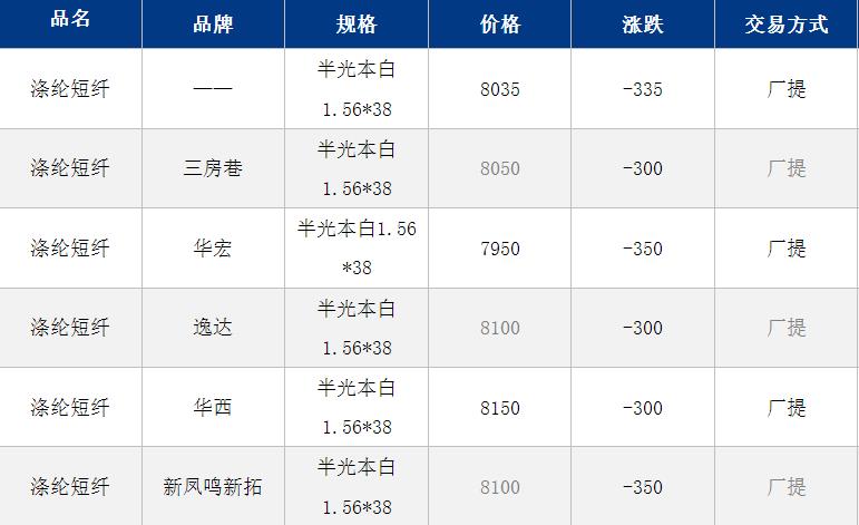 1.4D半光直紡滌綸短纖江浙商談重心7900-8400元/噸出廠或短送,福建主流商談8500-8600元/噸現(xiàn)款短送,山東、河北主流8000-8600元/噸送到。