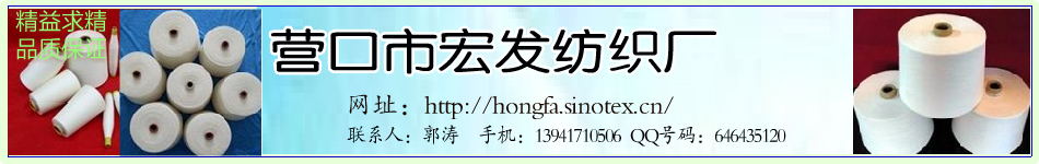營(yíng)口市宏發(fā)紡織廠成立于1999年,是一家專業(yè)生產(chǎn)棉紗的中型紡織企業(yè)。公司有員工400余人,現(xiàn)有紡紗能力6萬錠、(4萬賽絡(luò)緊密紡)及國(guó)內(nèi)先進(jìn)的倍捻設(shè)備 。有較強(qiáng)的研發(fā)能力,能生產(chǎn)出深受客戶喜愛的新特產(chǎn)品。