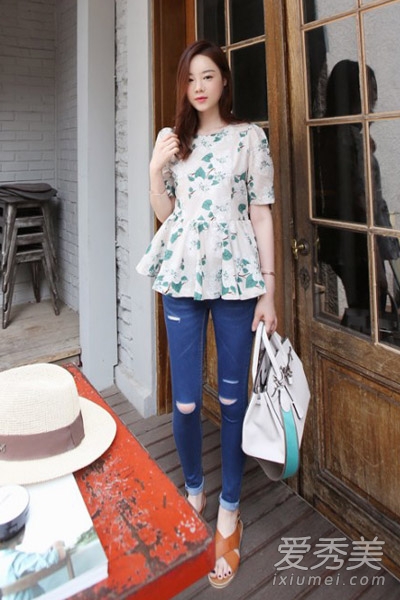 這款印花雪紡衫精致的韓版設(shè)計,巧妙收腰,裙擺式下擺,既時尚又很能藏肉,就算有點小肚肚也能穿,搭配破洞牛仔褲,多了幾分帥氣潮范。