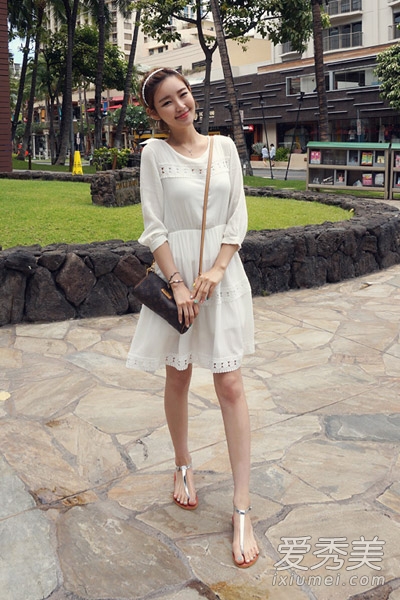 夏天想扮清純的話,白色連衣裙無疑是*好的選擇,相信女孩衣櫥里也都有那么一件白色連衣裙,小清新的風格很適合夏天穿,給夏日注入絲絲涼意,起到視覺上的降溫效果。