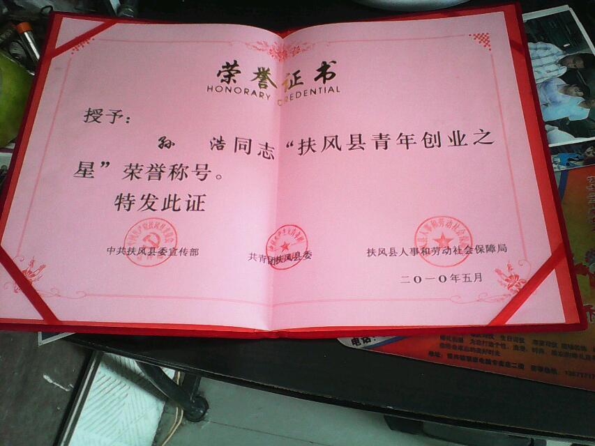 榮獲“扶風(fēng)縣青年創(chuàng)業(yè)之星”