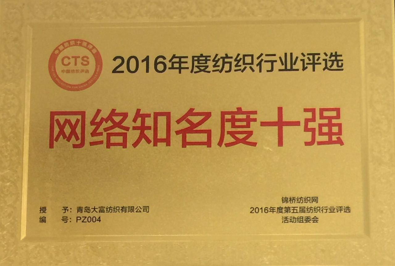 慶祝青島大富紡織榮獲青島市十大