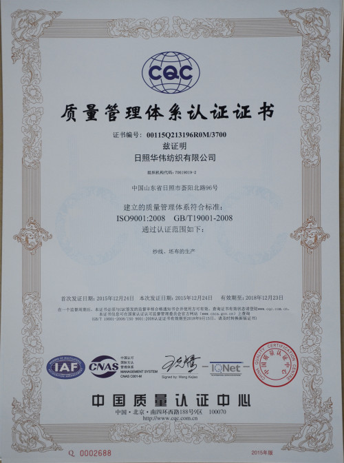 質(zhì)量管理體系認(rèn)證證書(shū)